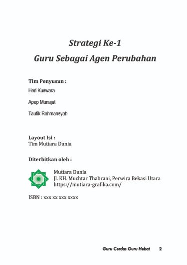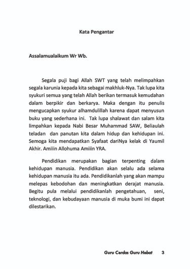 Percaturan kualitas guru sudah sejak lama dibahas dalam berbagai media. Semua pembahasan menjadi bahan dan acuan dalam proses peningkatan kualitas guru itu sendiri. Di dalam buku yang sederhana ini dibuka cakrawala kesadaran kita sebagai seorang guru sehingga sadar akan dirinya sebagai tenaga pendidik, tenaga pengajar, dan tenaga pelatih untuk menciptakan anak didik kita yang cerdas dan berakhlakul karimah melalui kegiatan pengelolaan kelas yang efektif dan penyusunan program pembelajaran berbasis saintifik.